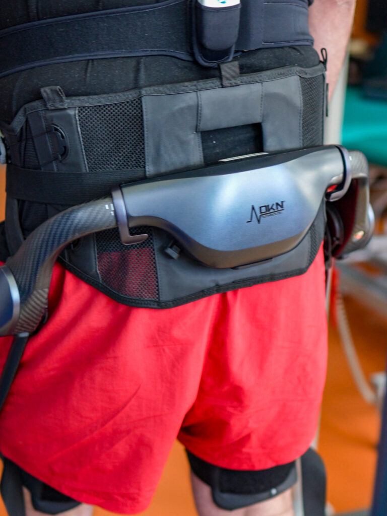 W trakcie prezentacji przetestowaliśmy sprzęt DKN EXO. Przetestowaliśmy na zdrowej osobie, jak również na osobie chorej – pacjencie, który był po urazie odcinka szyjnego kręgosłupa. Jakie są nasze spostrzeżenia? Jest to fajny sprzęt, jeśli chodzi o trzeci etap, można powiedzieć końcowy etap rehabilitacji, kiedy pacjent w jakiś sposób się przemieszcza, chodzi, celem wspomagania tego chodzenia. Oczywiście to urządzenie prawdopodobnie zda egzamin.
