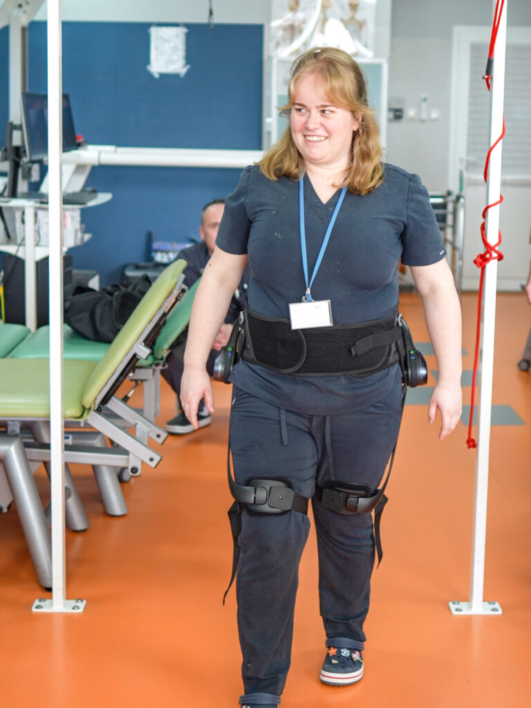 Szczególną uwagę podczas testów zwrócono na wykorzystanie urządzenia w końcowej fazie terapii. To moment, w którym pacjent odzyskuje zdolność poruszania się, ale nadal wymaga wsparcia w zakresie stabilizacji, kontroli ruchu i poprawy jakości chodu.